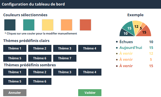 Vous pouvez choisir les couleurs présentes dans les widgets.
