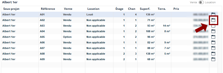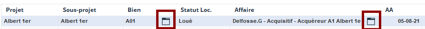 Ci-dessous par exemple, la première icone ouvre le bien, tandis que la seconde ouvre l’affaire.